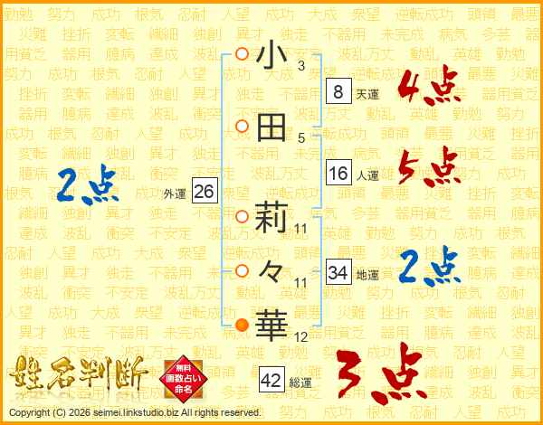 小田莉々華さんの総運は42画の3点!