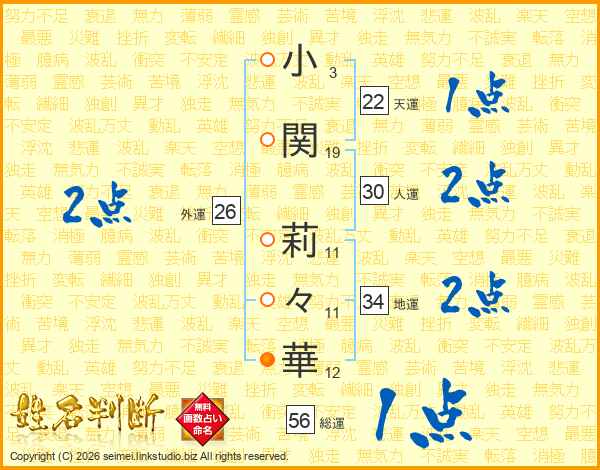 小関莉々華さんの総運は56画の1点!
