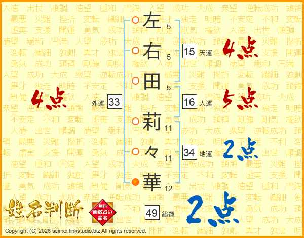左右田莉々華さんの外運は33画の4点!