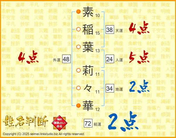 素稲葉莉々華さんの総運は72画の2点!
