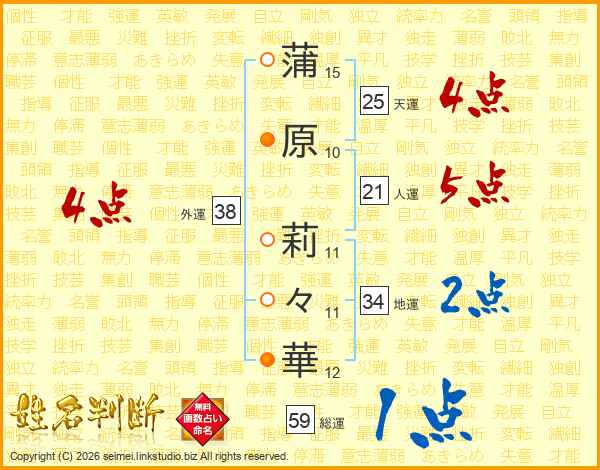 蒲原莉々華さんの天運は25画の4点!