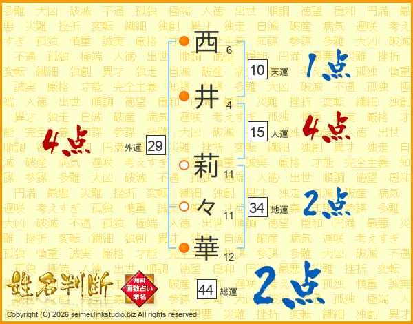 西井莉々華さんの総運は44画の2点!