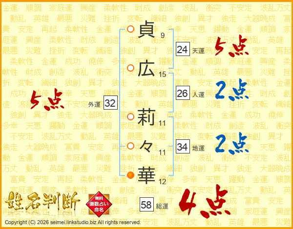 貞広莉々華さんの外運は32画の5点!