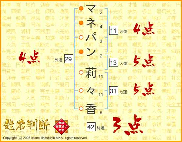 マネパン莉々香さんの総運は42画の3点!
