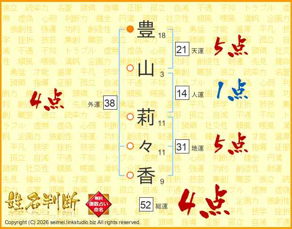 豊山莉々香さんの外運は38画の4点!