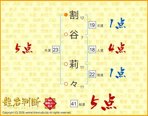 割谷莉々さんの総運は41画の5点!