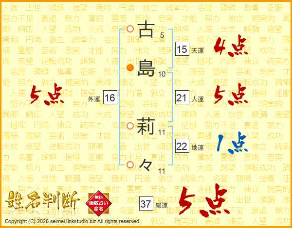 古島莉々さんの総運は37画の5点!