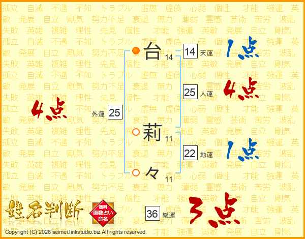 台莉々さんの天運は14画の1点!