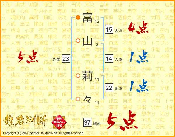 富(12画)山(3画) 莉(11画)々(11画)