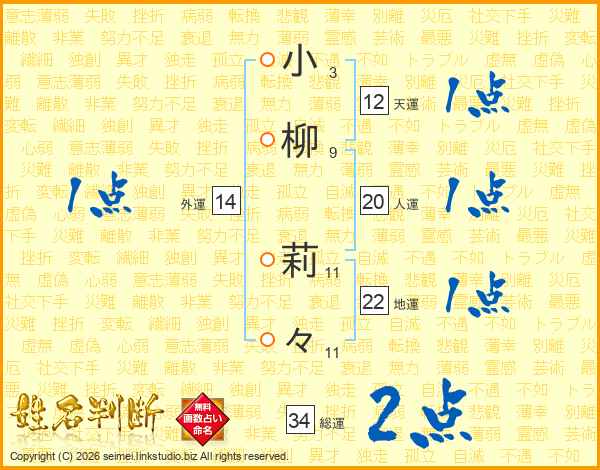 小柳莉々さんの総運は34画の2点!