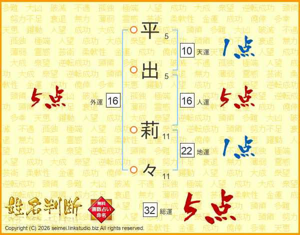 平出莉々さんの総運は32画の5点!