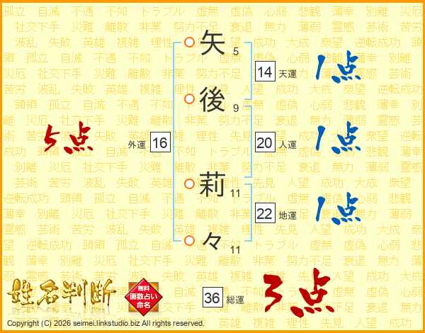 矢後莉々さんの天運は14画の1点!