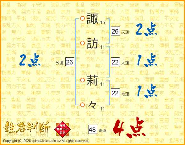 諏訪莉々さんの外運は26画の2点!