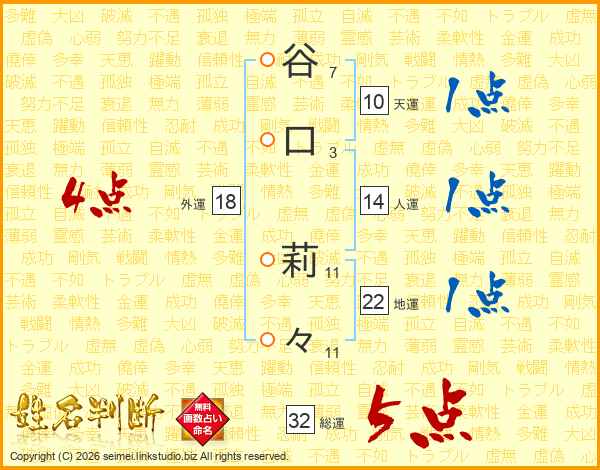 谷口莉々さんの総運は32画の5点!