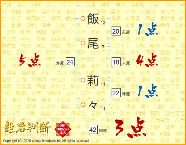 飯尾莉々さんの外運は24画の5点!