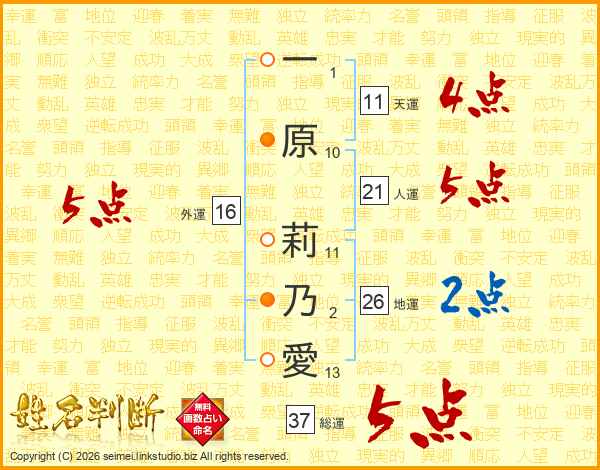 一原莉乃愛さんの総運は37画の5点!
