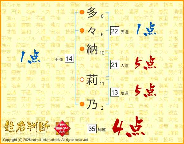 多々納莉乃さんの天運は22画の1点!