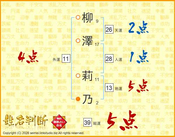 柳澤莉乃さんの総運は39画の5点!