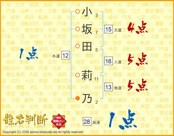 小坂田莉乃さんの総運は28画の1点!