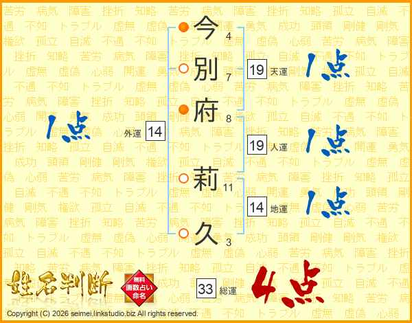 今別府莉久さんの総運は33画の4点!