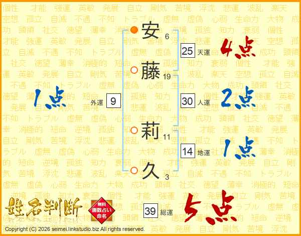安藤莉久さんの総運は39画の5点!