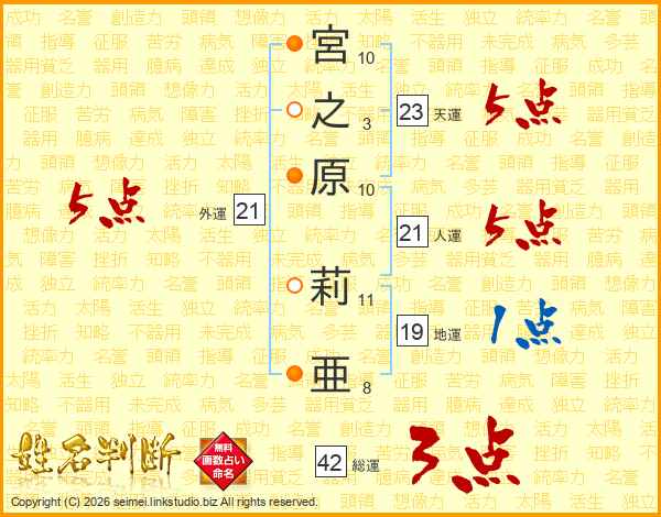 宮之原莉亜さんの外運は21画の5点!