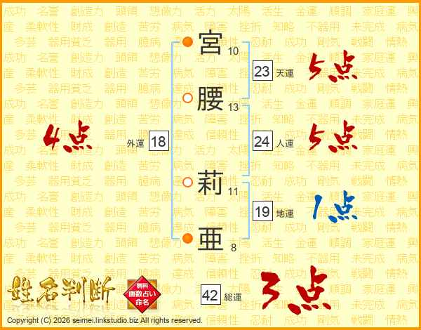 宮腰莉亜さんの天運は23画の5点!