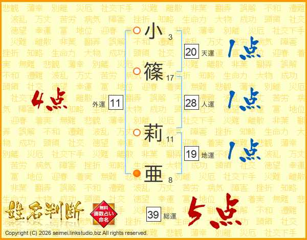 小(3画)篠(17画) 莉(11画)亜(8画)