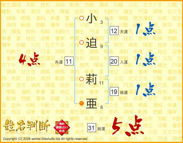 小迫莉亜さんの総運は31画の5点!