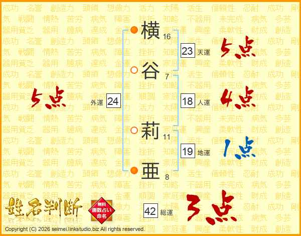 横谷莉亜さんの外運は24画の5点!