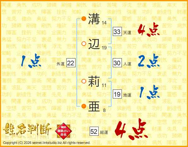 溝辺莉亜さんの総運は52画の4点!