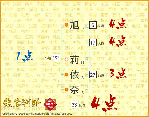 旭莉依奈さんの総運は33画の4点!