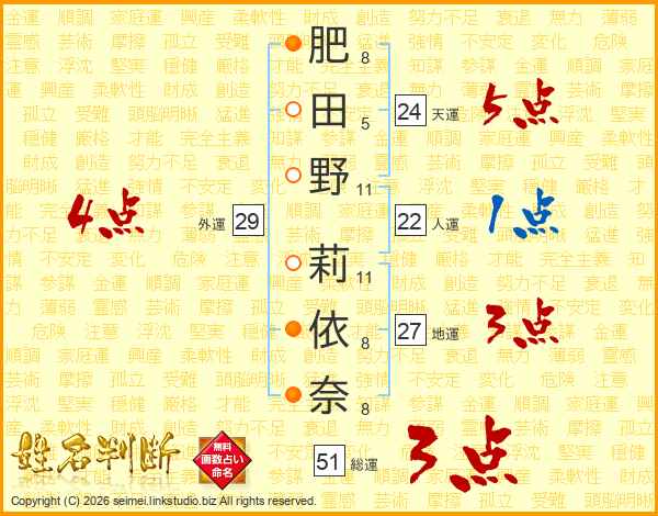 肥田野莉依奈さんの総運は51画の3点!