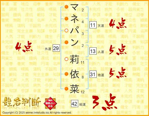マネパン莉依菜さんの総運は42画の3点!