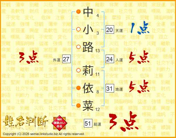 中小路莉依菜さんの総運は51画の3点!