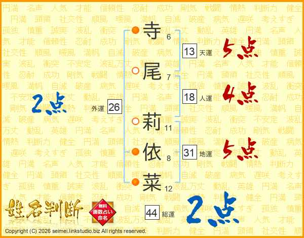 寺尾莉依菜さんの総運は44画の2点!