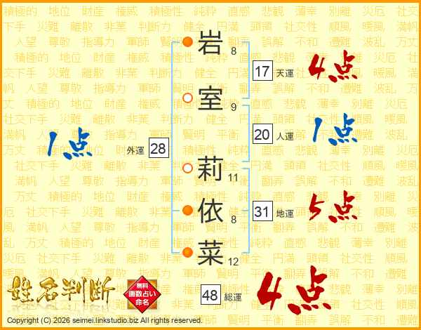 岩室莉依菜さんの総運は48画の4点!