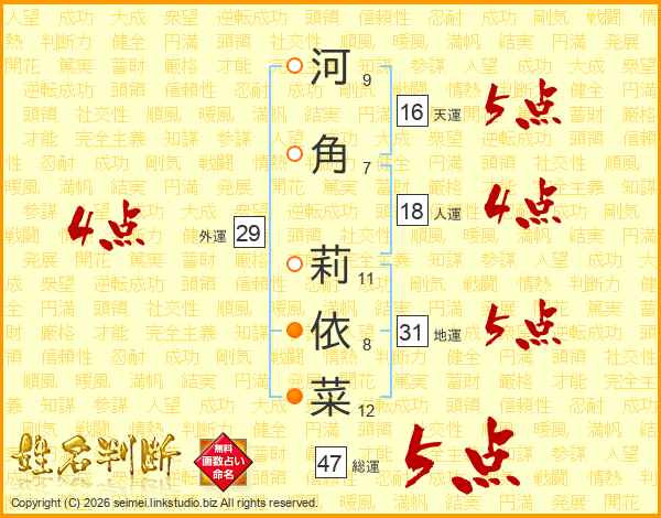 河角莉依菜さんの総運は47画の5点!