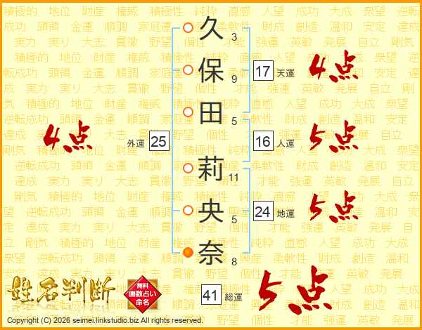久保田莉央奈さんの総運は41画の5点!