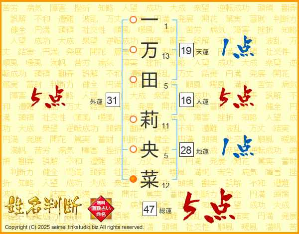 一万田莉央菜さんの総運は47画の5点!