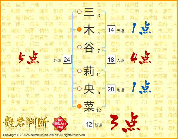 三木谷莉央菜さんの総運は42画の3点!