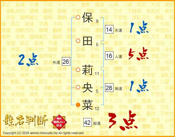 保田莉央菜さんの総運は42画の3点!