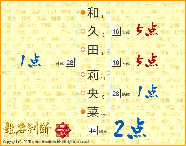 和久田莉央菜さんの天運は16画の5点!