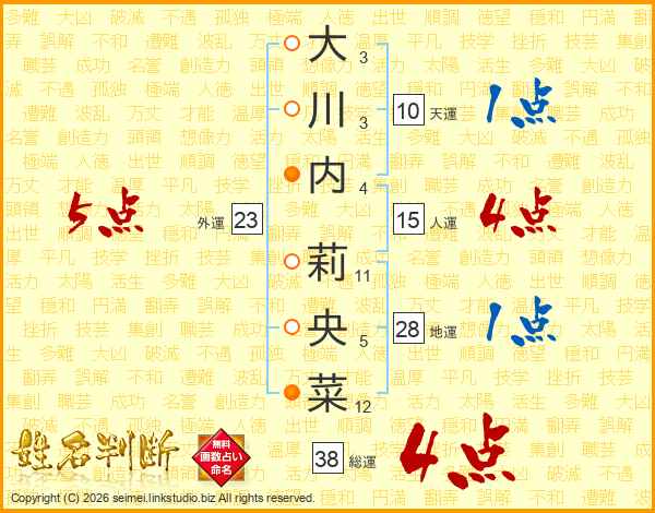 大川内莉央菜さんの総運は38画の4点!
