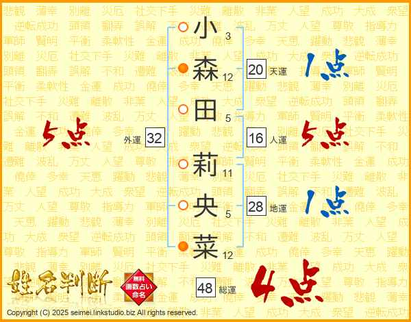 小森田莉央菜さんの総運は48画の4点!
