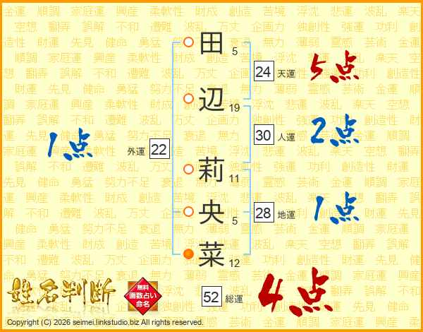 田辺莉央菜さんの総運は52画の4点!