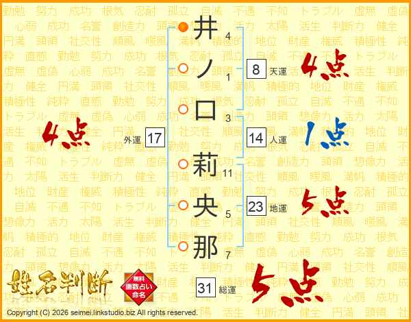 井ノ口莉央那さんの総運は31画の5点!