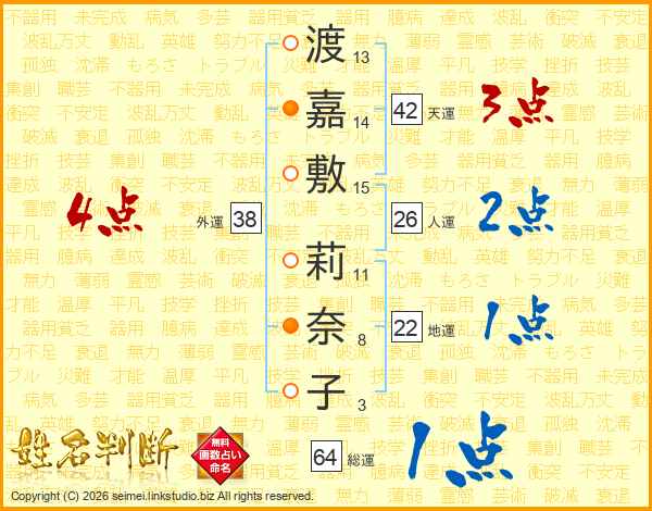 渡嘉敷莉奈子さんの外運は38画の4点!