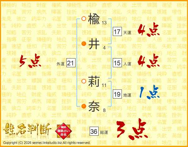 楡井莉奈さんの外運は21画の5点!