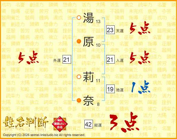 湯原莉奈さんの天運は23画の5点!